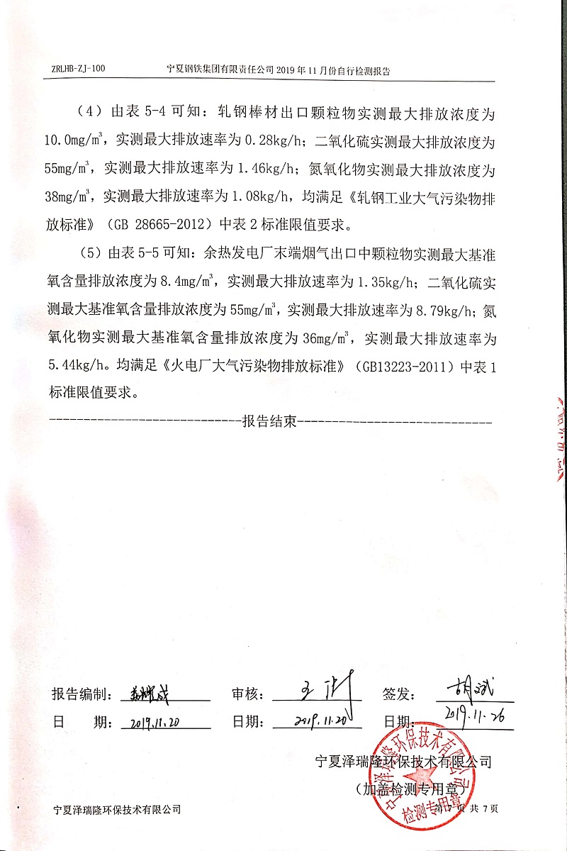 寧鋼2019年11月份自行檢測(cè)報(bào)告