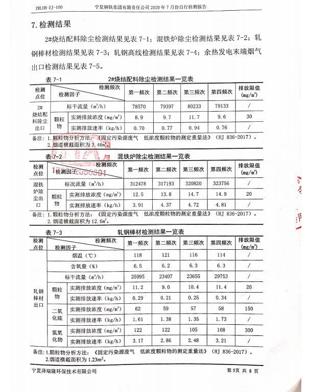 寧鋼2020年7月份檢測報告