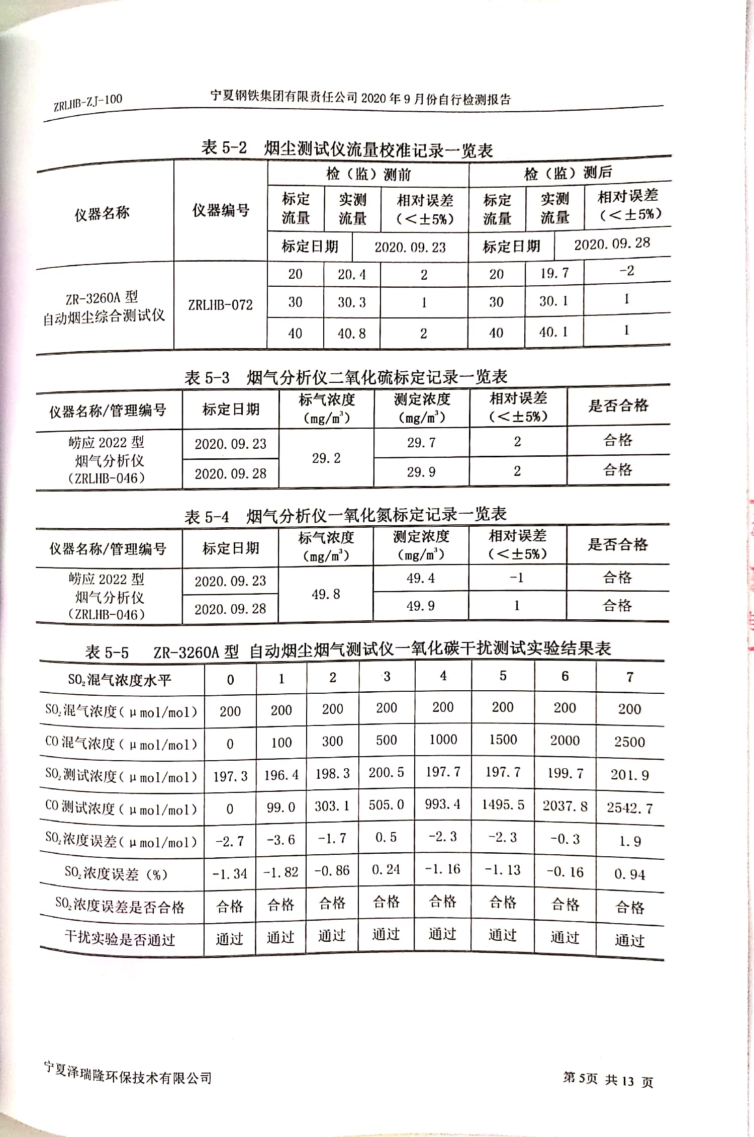 2020年9月自行檢測報告