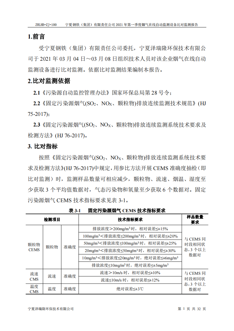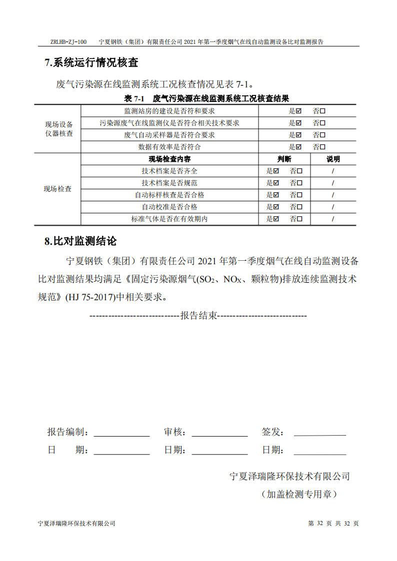 第一季度自行檢測(cè)報(bào)告